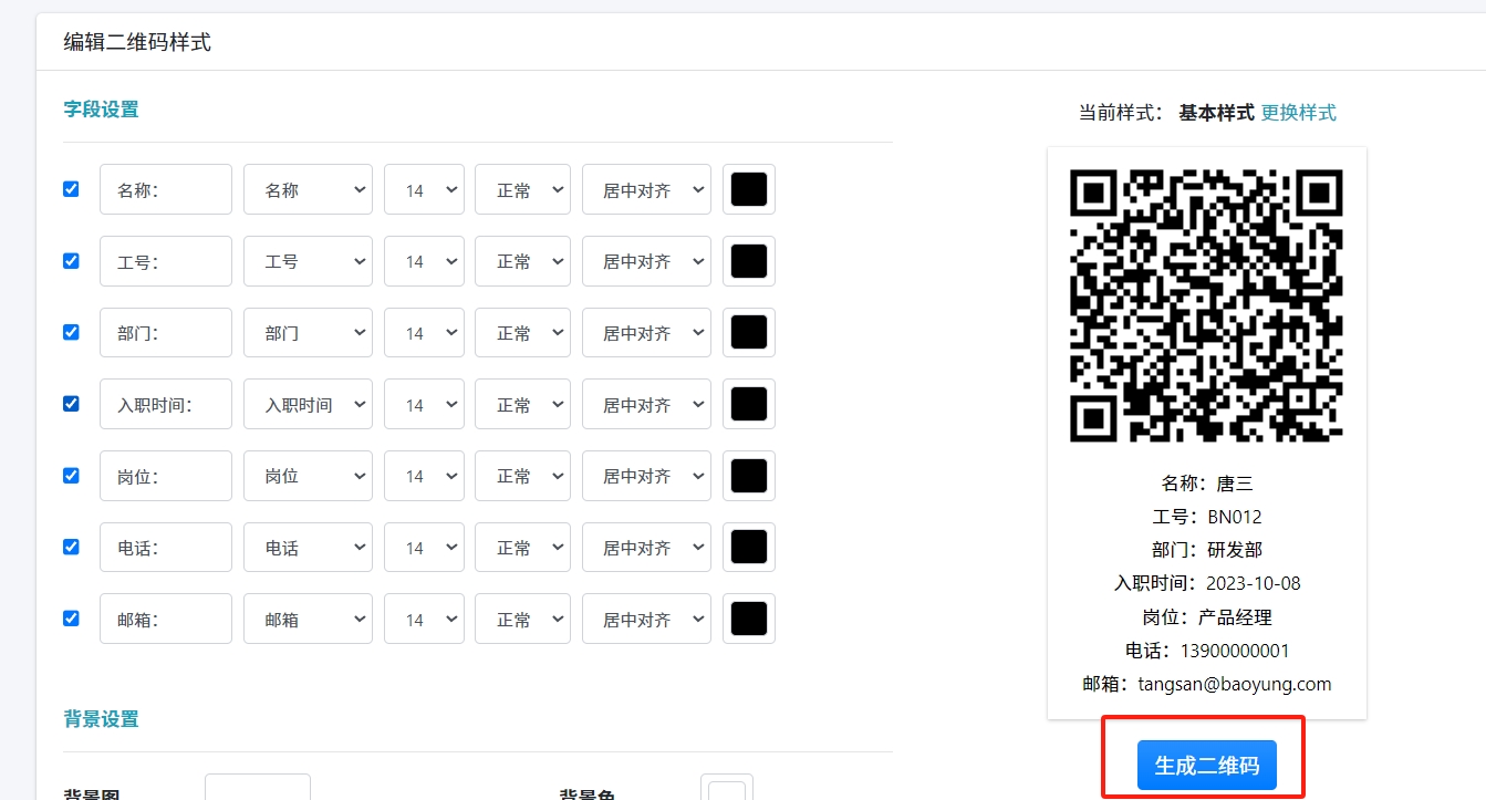 点击【生成二维码】按钮